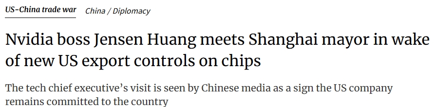 此次访问是黄仁勋三个月内第二次访华,正值美国进一步加强对半导体出口的管制。