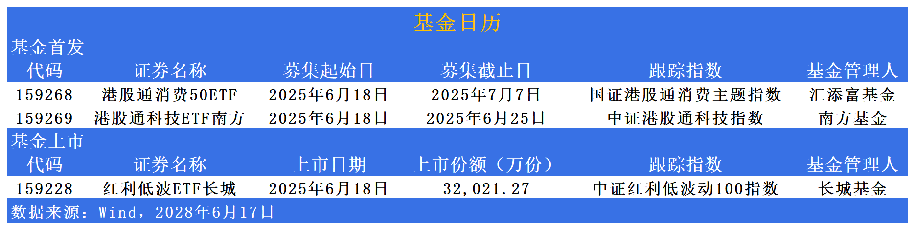具体来看,明日首发的有港股通消费50ETF(159268)、港股通科技ETF南方(159269)。明日上市的有红利低波ETF长城(159228)。