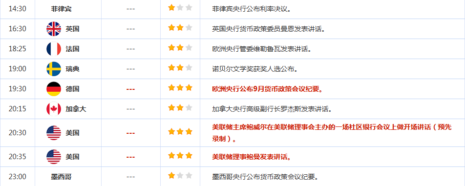 前日公布数据与消息: