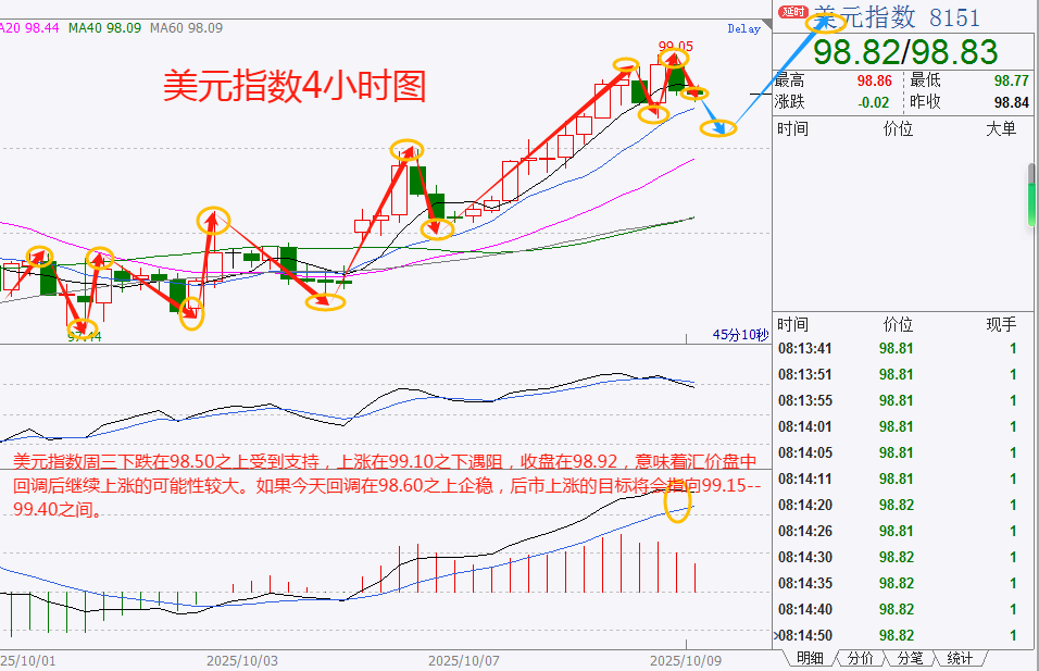 美元指数:可以在99.15---98.60的区间下限买入,有效破位30个点止损,目标在区间的上限。