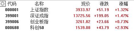 10月9日,A股主要指数高开高走,沪指涨1.32%报3933.97点,深证成指涨1.47%,创业板指涨0.73%,科创50指数涨2.93%。沪深两市成交额2.65万亿,较上一个交易日放量4718亿。