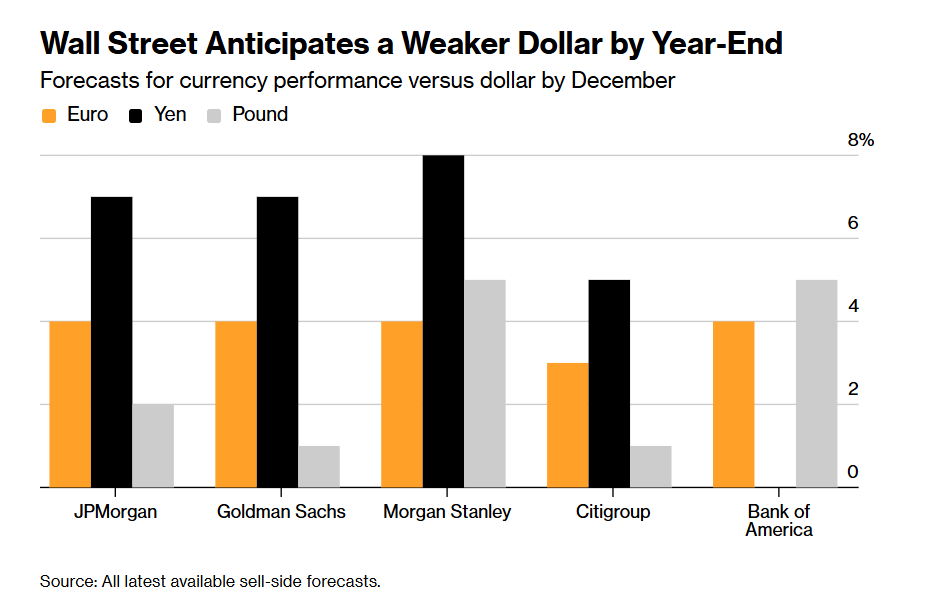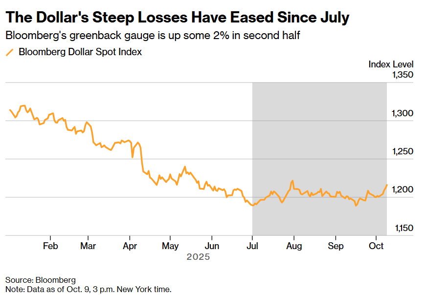 对于货币预测者而言,一个大问题是政府停摆已导致关键就业数据的发布推迟,不过美国劳工统计局据悉已召回员工准备一份关键的通胀报告。如果劳动力市场疲软的迹象继续显现,那么做空美元的交易可能会复苏,华尔街一些大银行仍预计美元会在接下来的几个月继续贬值。