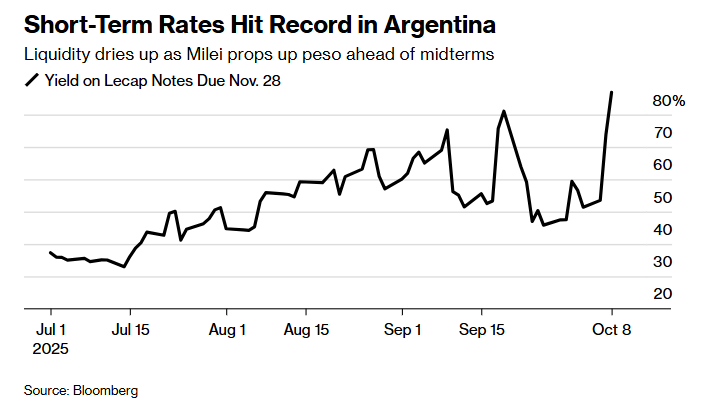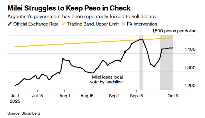 阿根廷的前景在9月初急转直下,当时米莱在布宜诺斯艾利斯省的一次地方选举中遭遇惨败,经济困境日益加剧,一些亲信还卷入腐败丑闻。