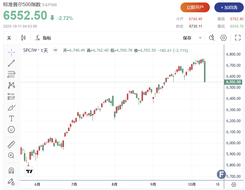 FX168财经报社(北美)讯 周五(10月10日),美国股市出现剧烈抛售行情,三大指数全线重挫,原因是美国总统唐纳德·特朗普(Donald Trump)威胁将对中国商品大幅提高关税,并指责中国“变得非常敌对”。