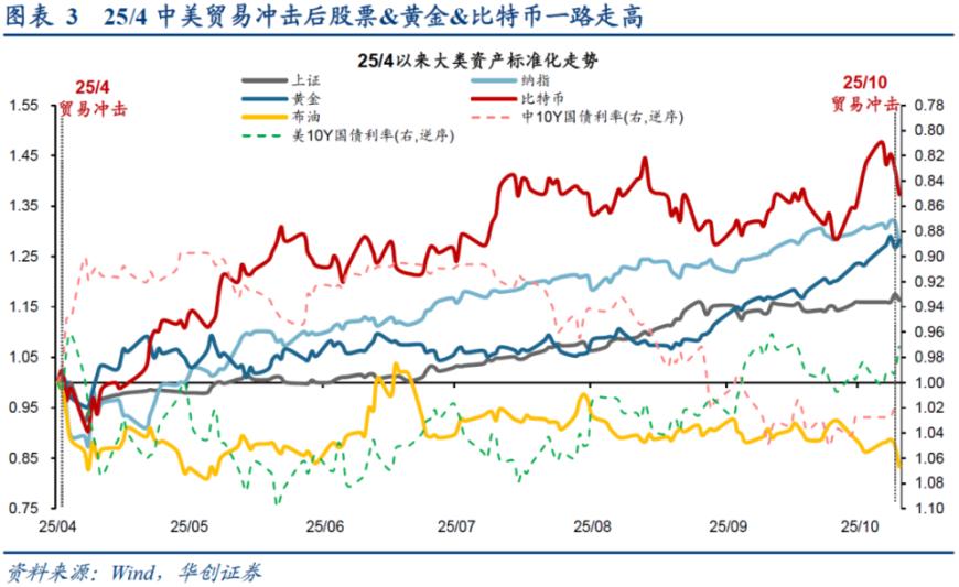 兴业证券指出,当下,无论是我国对于内部政策和外部谈判所作的储备、还是投资者心态的转变,均发生了深刻的变化,不可与4月对等关税时期简单类比。相比于4月对等关税时期,积极因素正在增多。若短期情绪释放带来波动,或再一次为中长期布局提供“黄金坑”,后续应对的重点仍应当聚焦于如何利用波动布局。10月景气和产业趋势仍是核心。