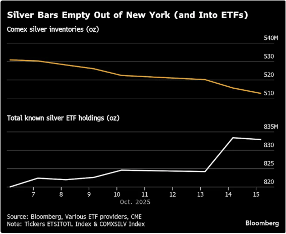 过去一周,已有逾1500万盎司白银从纽约商品交易所关联仓库被提取,预计大部分将运往伦敦以缓解供应紧张。不过,同期ETF资金净流入约1100万盎司,进一步削弱了伦敦库存的缓冲空间。