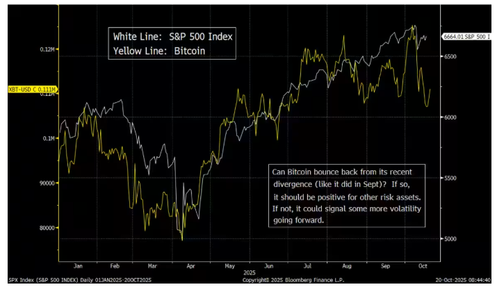Miller Tabak公司首席市场策略师马特·马利表示,投资者应密切关注比特币的反弹能否持续,以判断股市的下一步走势。马利在周一的报告中写道,比特币和股票目前仍经常同步波动。比特币是衡量市场流动性水平的良好指标,因此能否像9月那样从近期的下跌中反弹,对其他风险资产也“可能/应该”具有重要意义。