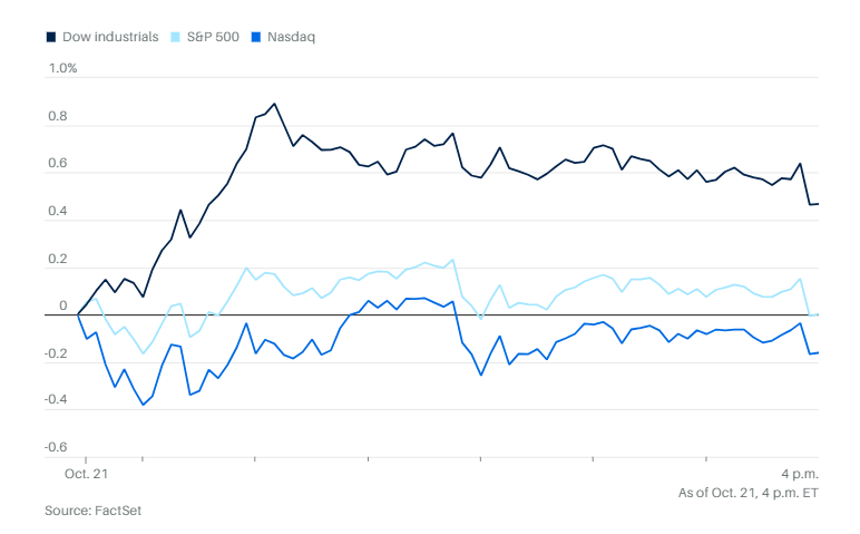 周二,又一轮强劲的财报推动道琼斯工业平均指数创下今年第十二次收盘新高,上涨218点,涨幅为0.5%。但标普500指数基本持平,纳斯达克综合指数下跌0.2%。 虽然大多数标普500成分股收盘上涨,但包括Alphabet在内的大型股票和一些被视为人工智能概念的能源公司表现不佳,拖累了整体指数。