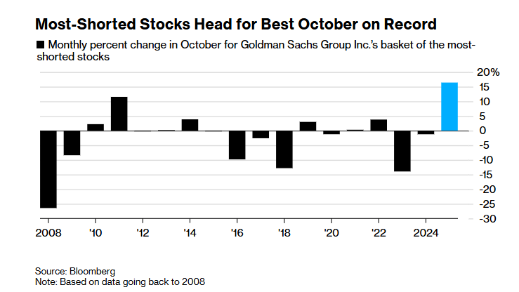 尽管过去六个月几乎所有风险预警都未能阻挡市场上涨,标普500仍录得自上世纪50年代以来最强劲的一段涨势,但10月的这波波动显示,一些投资者已经在联储10月29日利率决议前回补空头。G Squared Private Wealth的维多利亚·格林表示:“今年10月果然名副其实,是一个惊悚季。”