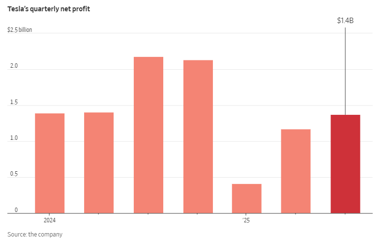 营收大幅增长得益于汽车销量创纪录增长。由于美国消费者赶在9月30日7500美元联邦电动车税收抵免到期前下单,销量激增。特斯拉的能源发电与储能业务收入增长44%,电池装机量创下新高。