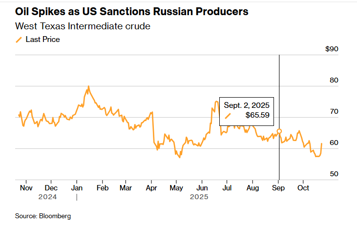 对卢克石油和俄罗斯石油公司的制裁,意在表明特朗普对俄罗斯的耐心正在减少,他正寻求方式向普京施压以推动乌克兰和平协议。欧盟也批准了一项新的制裁方案,将从明年开始禁止进口俄罗斯液化天然气。