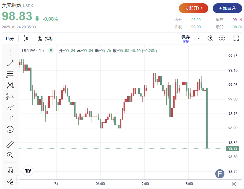 美元指数DXY短线跳水逾30点,现报98.83。