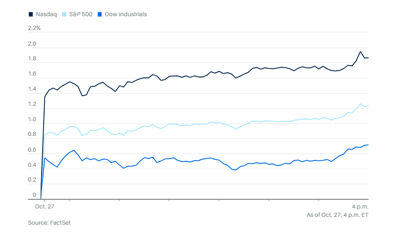 无论是大型股还是小型股都走高,投资者因美中之间脆弱的贸易休战以及利率可能进一步下调的预期而忽视了一切风险。标准普尔500指数、道琼斯指数和纳斯达克指数这三大股指均创新高。标准普尔500指数上涨1.2%,创下2025年第35次新高,是三大指数中创纪录次数最多的。道琼斯指数上涨0.7%,纳斯达克指数上涨1.9%。