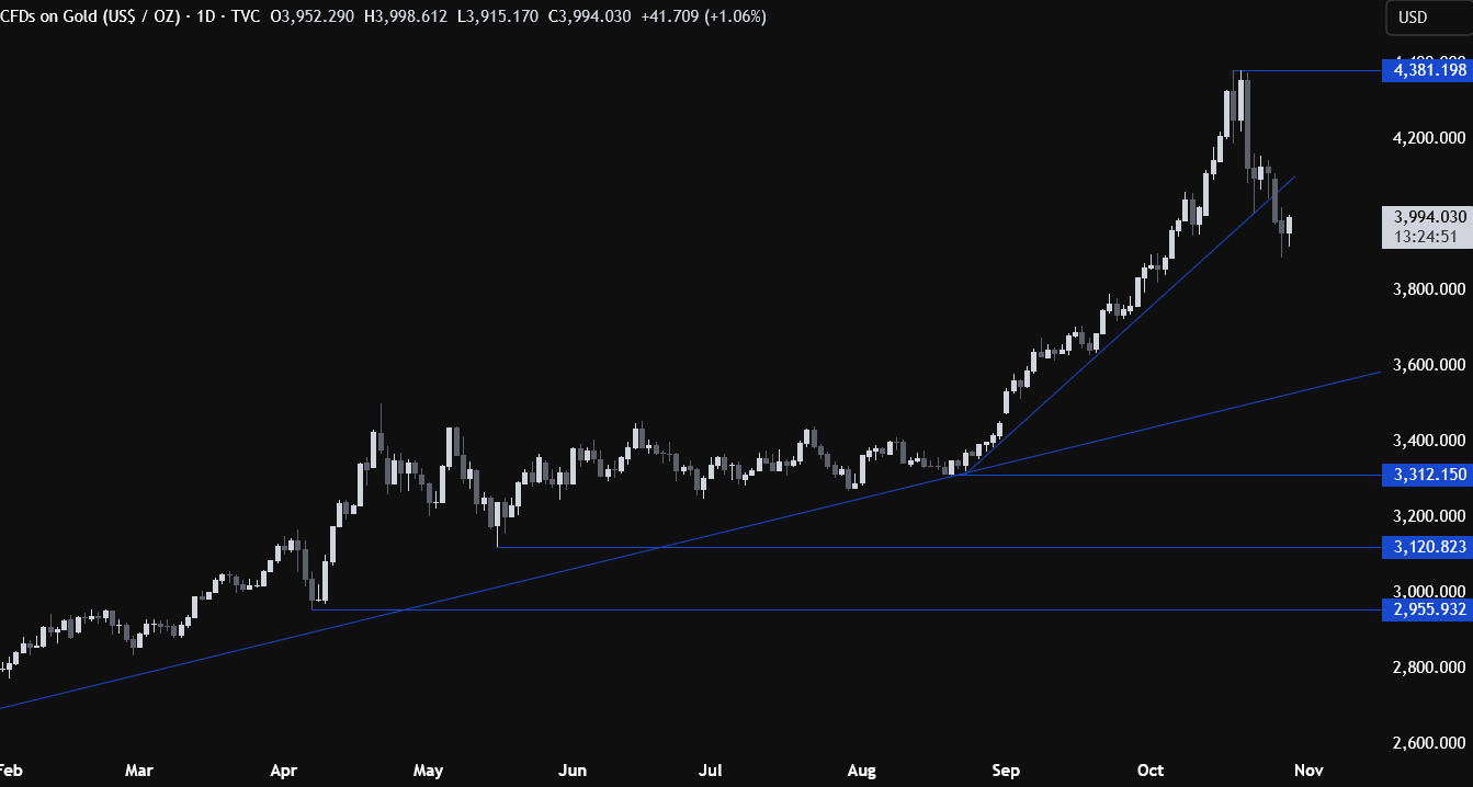 黄金可谓“不倒翁”,但即便今日价格小幅反弹,也并不意味着抄底买盘重新掌控局面。短线图表显示,虽然买家在接近 3,900美元 附近出手支撑,但要彻底化解近期的抛压,仍有更多工作要做。