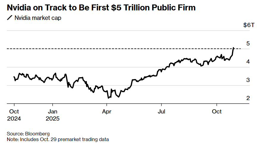 (英伟达有望成为首家市值5万亿美元的上市公司 来源:彭博社)
