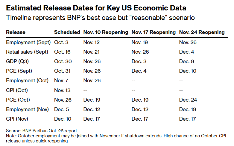 彭博经济学家评论称:“即便政府重新开放,劳工统计局也难以在12月FOMC会议前收集并处理10月与11月的CPI数据。我们认为,若10月数据能发布,将会促使美联储在年内最后一次会议上实施降息。”