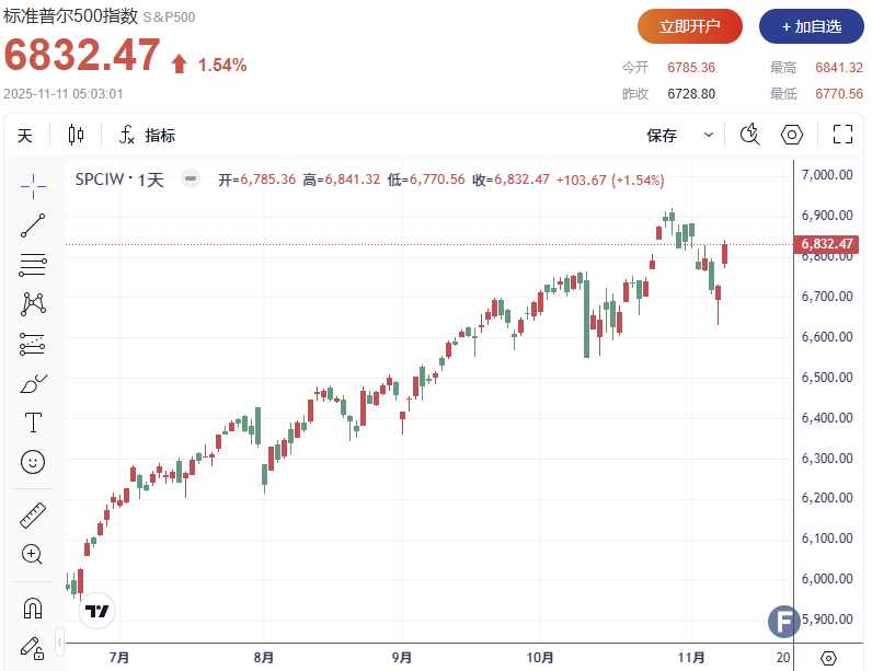 在人工智能(AI)牛市的领军股中,英伟达(Nvidia)、博通(Broadcom)等表现强劲,引领市场上涨。随着政府关门有望结束,投资者风险偏好回升。微软(Microsoft)股价上涨1.9%,有望终结连续八日的下跌——这是自2011年以来该股最长的日跌纪录。上周,正是这些AI龙头股拖累了整体市场,因为华尔街投资者担忧AI板块估值过高。