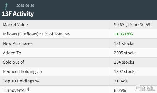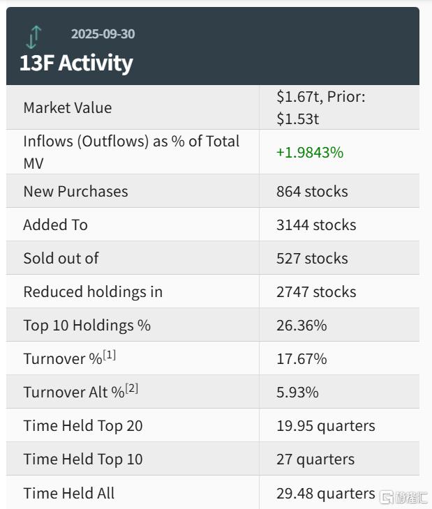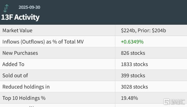 摩根大通第三季度新增864只个股、增持3144只个股、减持2747只个股,清仓527只个股。其中,前十大持仓标的占总市值的26.36%。