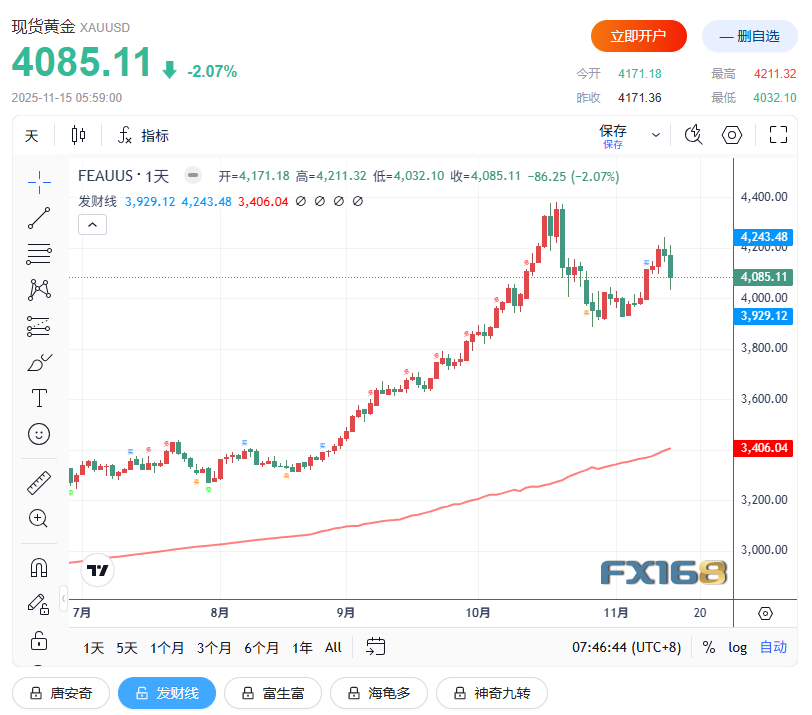 华尔街谨慎:金价守住4000美元但上攻乏力黄金在周五(11月14日)成功守住 4000 美元关键支撑,并在本周前半段吸引了坚实的买盘。周四,现货金一度升至 4243.48美元高点,但随后遭受大量抛压。