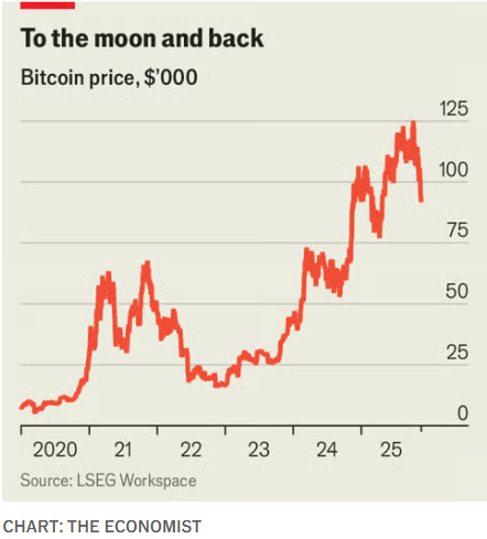 价格开始下跌,比特币从10月初约12.6万美元的历史高点跌至如今接近9.2万美元。作为一种纯粹依赖未来资本利得预期、并不产生收入的投机资产,缺乏新的利好叙事成为价格进一步上涨的一大障碍。