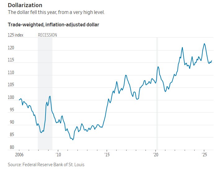 目前,这些因素还未对美元的储备地位造成决定性冲击,但都造成了伤害。风险在于,市场一旦预判这种格局即将改变,可能会提前推高国债收益率,以应对外国买家撤离的风险。