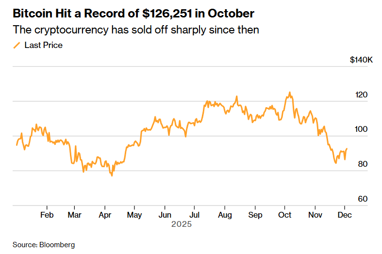 比特币今年10月曾创下126,251美元的历史高位,其后大幅回调。比特币在12月初曾暴跌,此前经历了糟糕的11月,当时它下跌超过18,000美元,创纪录的资金流出市场,这是自2021年5月(当时许多加密货币崩盘)以来的最大美元损失。