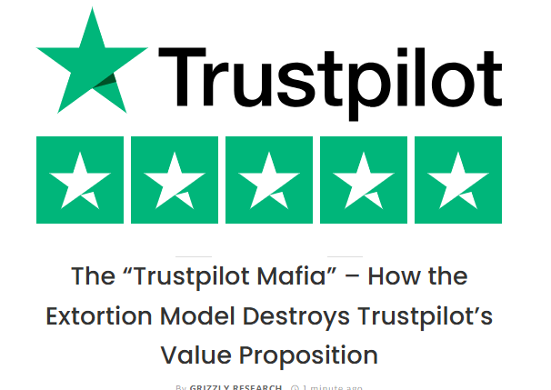 做空机构Grizzly Research(灰熊研究)最新发布的调查报告称,总部位于丹麦的评论平台Trustpilot,正在通过类似黑手党的手段敲诈企业,牺牲评论真实性换取商业利益,商业模式正面临严重的信任危机。