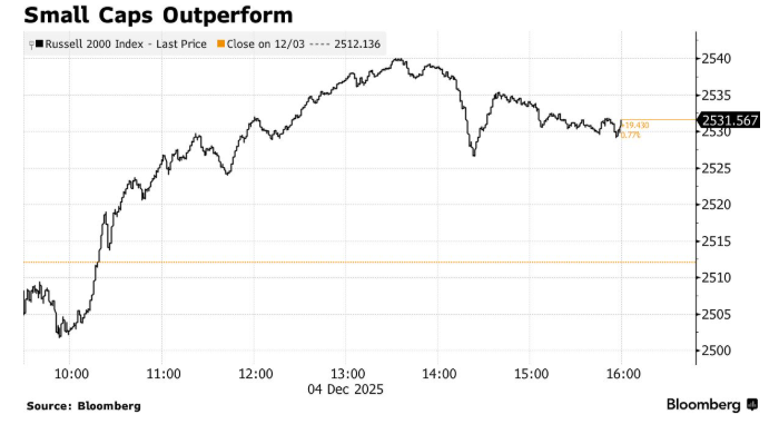 Fundstrat Global Advisors的马克·牛顿指出,12月前几周的走势可能比月底更波动。随着市场对12月降息的预期几乎已成定局,他指出工业、金融和小盘股等板块正逐步上涨。股市自11月底的快速反弹改善了技术面,支持12月的积极季节性趋势。尽管整体趋势偏多,但他认为在美联储公布决定前,技术面仍支持市场波动加剧。