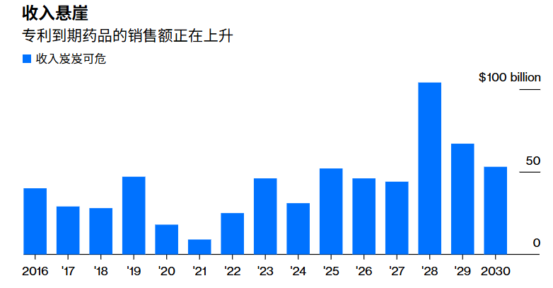 彭博报道说,对于制药公司来说,畅销药物专利的过期问题,一直都是商业周期中的一个难题。这种“专利悬崖”带来的巨大收入缺口,迫使制药巨头必须找到新的填补方式。如今,中国首次成为解决这一难题的关键。