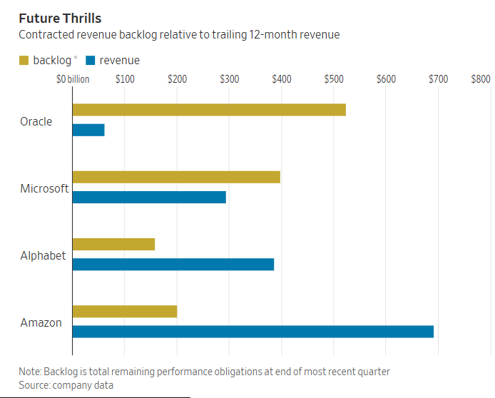 OpenAI的主要计算合作伙伴微软,其剩余履约义务总额仅约为过去四季度收入的1.4倍。