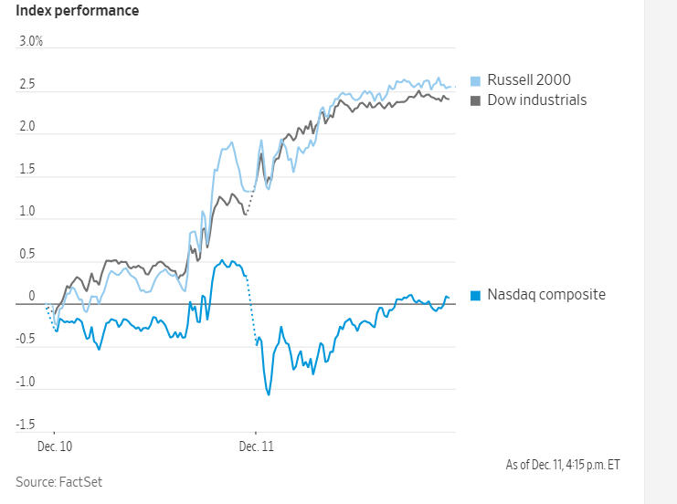 投资者开始远离科技股,将资金投入股市的其他领域。推动了非科技股创历史新高。标普500金融板块指数和标普500工业板指数周四均创下新高。收盘时金融行业指数上涨1.8%,工业部门指数上涨1%。小盘股指数罗素2000周四也上涨1.17%,连续第二个交易日创下历史新高。
