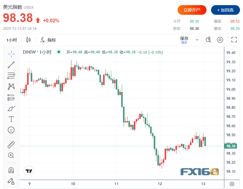 FX168财经报社(北美)讯 在美联储政策路径仍存分歧、AI概念股高估值遭遇现实考验以及全球宏观数据持续分化的背景下,全球金融市场周五(12月12日)出现明显波动。美股科技板块领跌主要股指,美元在连续走弱后出现技术性反弹,而比特币及加密相关资产在风险偏好回落的冲击下同步下挫,市场情绪明显转向谨慎。