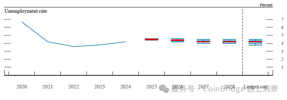 上图是美联储对于今后几年的美国失业率预测,认为美国明年失业率会上升,然后在后年开始下降。笔者认为这个预测过于乐观了。现在全球人口老龄化加剧,社会税负只会继续上升。在税赋上升的时候,失业率也会同步上升。特别是叠加 AI,白领青年人的失业问题只会越来越严重。失业问题不会仅限于发达国家,实际上2026年由于发达国家的贸易壁垒上升,制造业回流等因素,新兴市场国家的失业问题也会更加恶化。