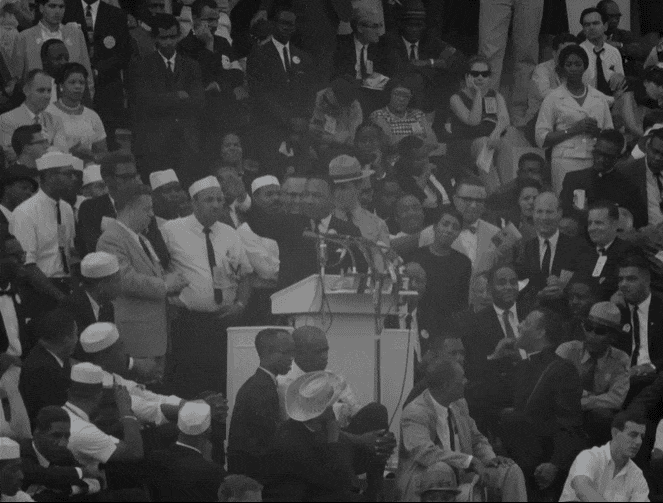 1963 年,马丁·路德·金演讲后,人群沸腾。