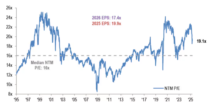 不过,他们也认为,华尔街的估值仍将高于大多数其他市场。“我们认为较为合理的市盈率上限在20倍左右,因为美国公司仍是全球质量最高的企业之一,得益于可持续增长、高定价能力和利润率,以及将现金流再投资于未来增长项目(比如人工智能在幕后持续推进)和资本回报的能力。”