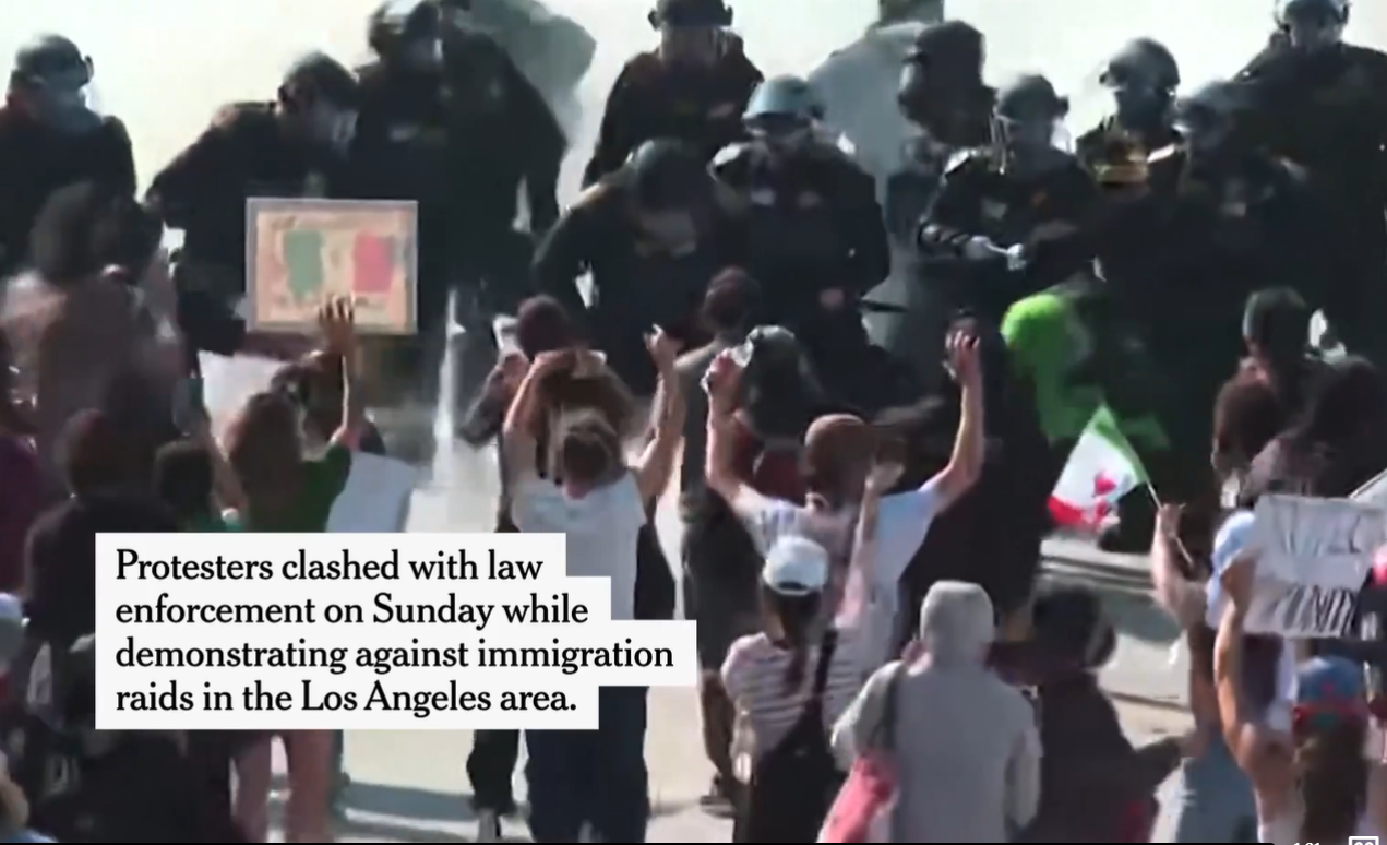 先是特朗普政府发起突袭驱逐移民行动,引发抗议后,他绕过加利福尼亚州州长纽森的权限,直接出动了国民警卫队进驻洛杉矶地区。