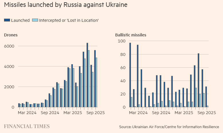 根据总部位于伦敦的信息韧性中心整理的乌克兰空军公开数据,乌克兰对弹道导弹的拦截率在夏季一度提升,在8月达到37%,但到了9月骤降至6%,而同期俄方的导弹发射次数有所减少。