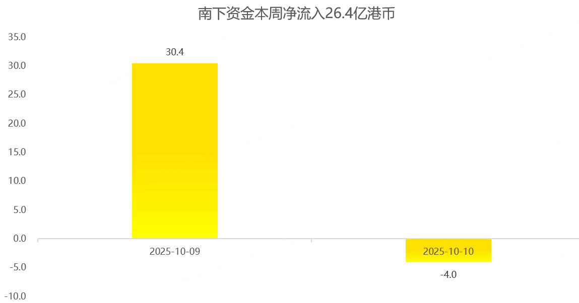 受A股国庆假期休市影响,本周深/沪港通仅开放2个交易日,南下资金本周净流入仅26.4亿: