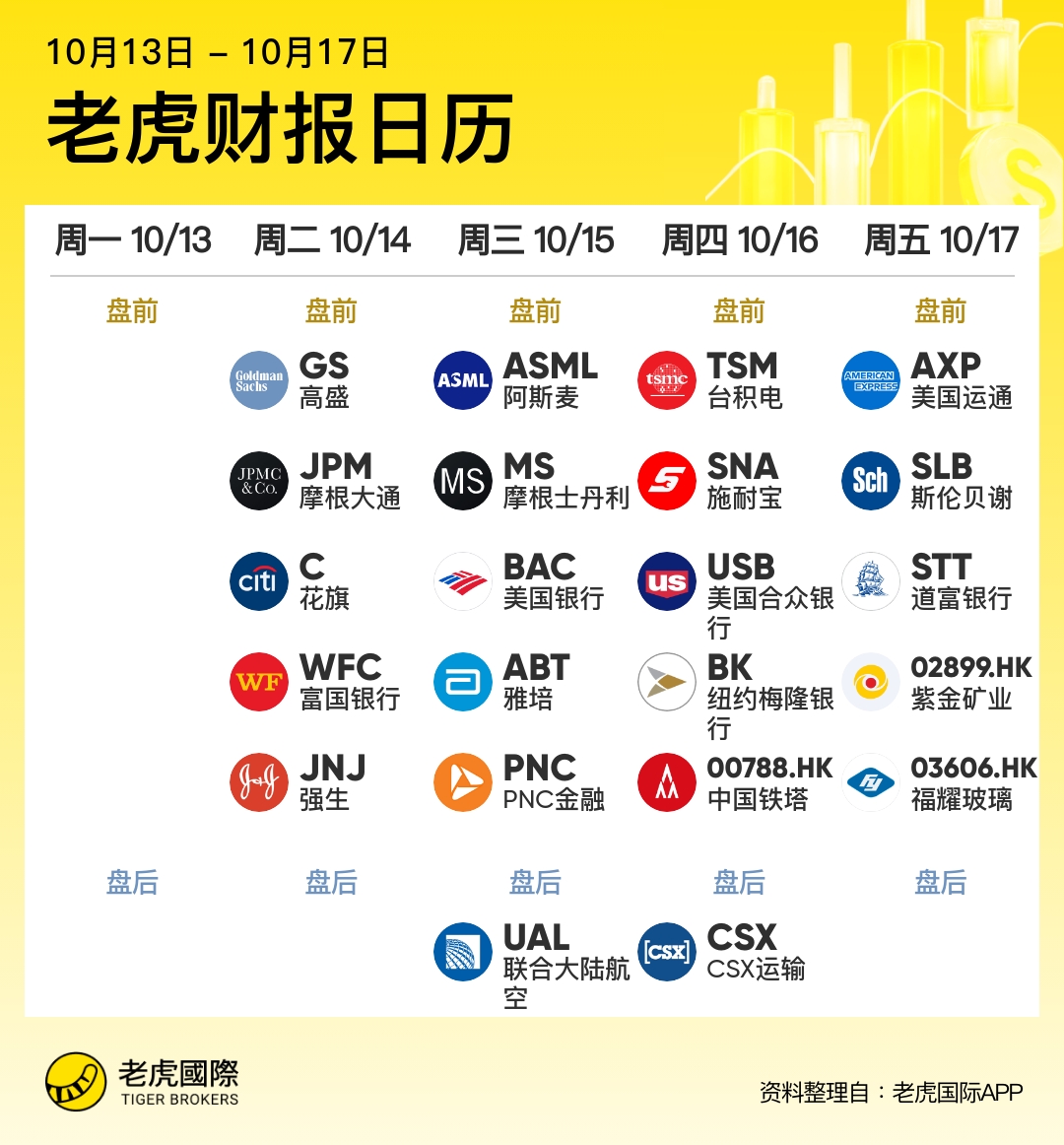 5. 下周,美股财报季开启,银行股、阿斯麦、台积电将发布财报: