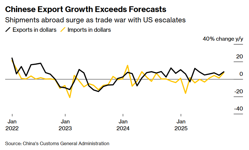 兴业银行大中华区经济学家Michelle Lam表示:“尽管面临美国关税,中国出口仍保持韧性,得益于多元化的出口市场和强劲的竞争力。目前美国关税对整体贸易的影响有限,这可能让中国在中美谈判中采取更强硬的立场。”