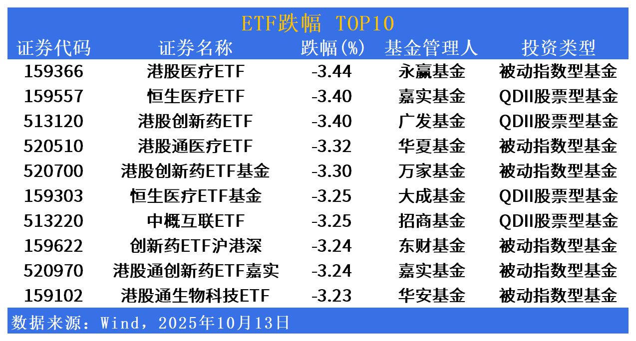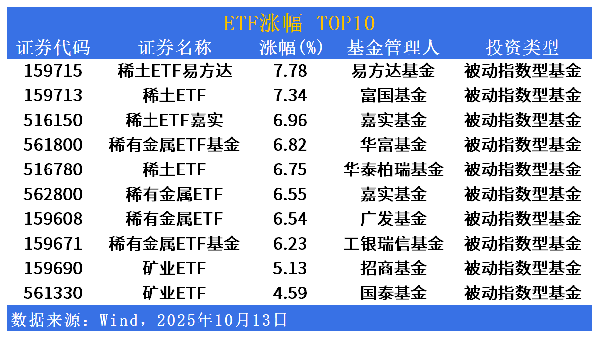 ETF市场日报|稀土板块及相关ETF领涨!港股创新药回调居前