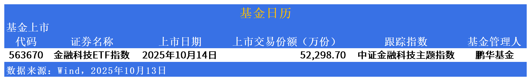 ETF发行市场方面,鹏华金融科技ETF指数(563670)明日上市