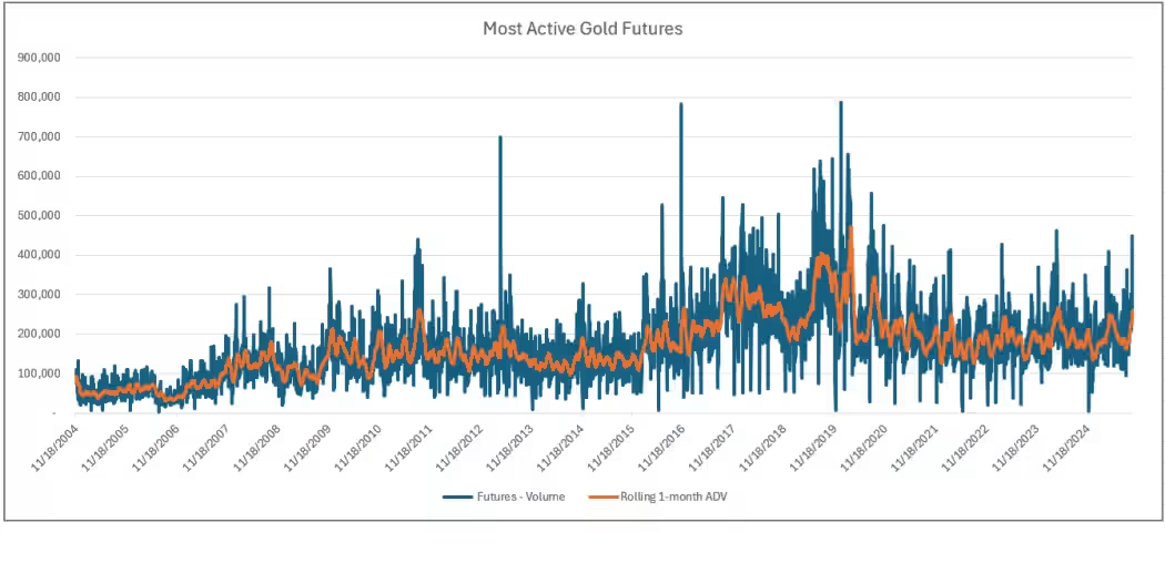 根据道琼斯市场数据,10月9日,美国最活跃的Comex黄金期货合约成交量达到448,407手,为2024年4月12日以来最高。同一天,GLD的交易量也达到3,370万股,是2025年4月22日以来的最高水平。
