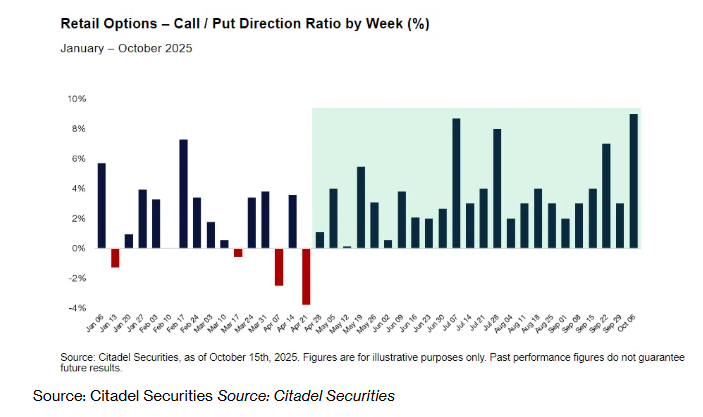 分析方面, 根据Citadel Securities的数据,自2023年11月以来,散户投资者连续24周对看涨期权的需求超过看跌期权,创下历史最长纪录。这家公司的斯科特·鲁布纳指出,这一趋势自2020年以来从未如此强劲,散户对股市的信心“依然惊人”。