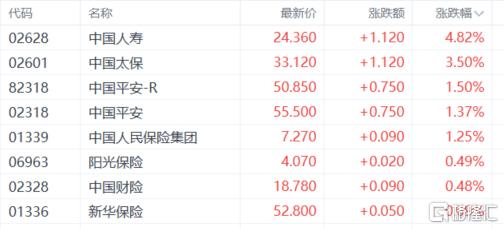 保险股活跃,中国人寿涨近5%,中国太保、中国平安、中国人民保险集团、阳光保险等跟涨。