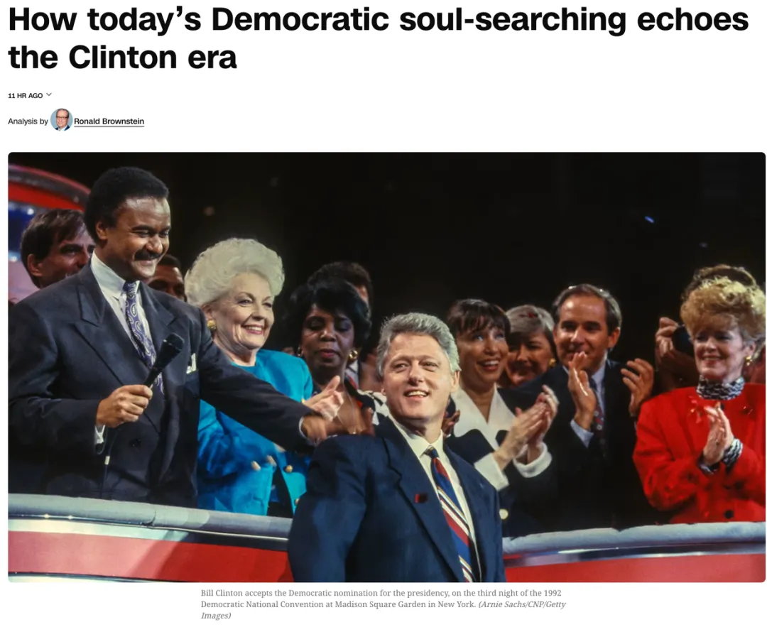 这些呼声呼应了1980年代民主党中间派发出的警告——他们当时组建了“民主党领导委员会”(Democratic Leadership Council, 简称DLC)。该组织在1980年代末与更自由派的选民群体激烈交锋,最终在1992年比尔·克林顿当选总统后掌控了党内主导权。