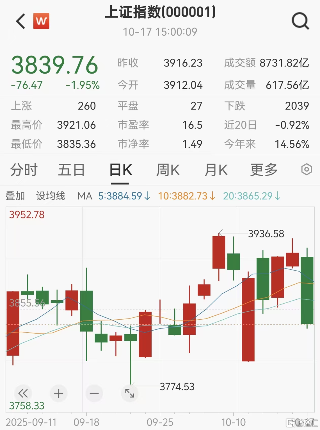 周五,以为调整差不多了,准备梭哈→Duang!!!收一根扎扎实实的大阴线。