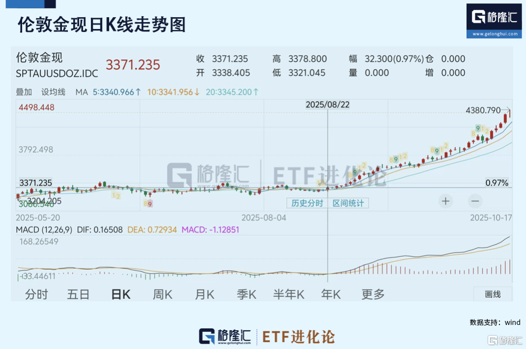 从伦敦黄金现货的日K线来观察,会发现金价5月达到3400美元的历史高点后,一直横盘震荡4个月,直到8月22日开始掉头上涨,进入10月更是呈现加速上涨的态势,背后的原因是什么?