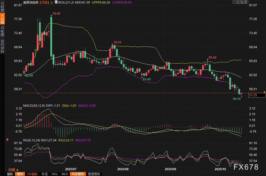 美国西德克萨斯中质油也从60.17美元降至57.25美元,屡次触及逾五个月低点。这一走势深受中美贸易紧张局势、地缘政治缓和信号以及国际能源署(IEA)对供应过剩的悲观预测影响。尽管中东和乌克兰等地缘风险有所缓解,但全球经济放缓担忧和原油库存增加的双重压力,让投资者情绪持续低迷