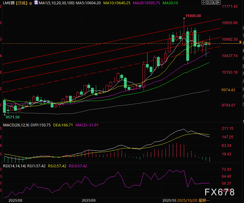 北京时间19:20, LME铜现报10603美元/吨。